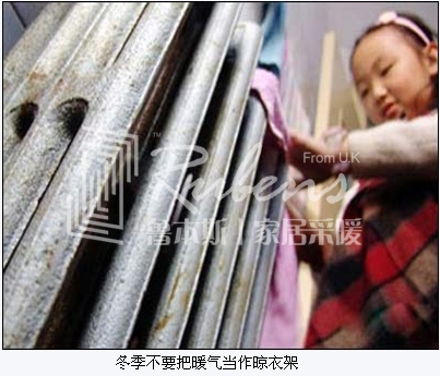 湿衣物、湿毛巾。一到冬天,令家庭主妇头疼的事情就是洗好的衣服好几天都不干,把湿的衣物、毛巾放在暖气片上,也成了家庭常见的现象。这样做确实有烘干衣物和给室内加湿的双重效果,不过衣物多数是漂洗干净的,上面的脏物、洗涤剂也会随水汽飘散到室内空气中。此外,如果暖气不干净,也很容易滋生细菌,污染衣物。