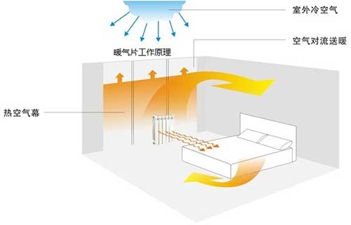 暖气的工作原理就是加热空气,如果避免上面的问题呢?就是把暖气片放置在窗口,门口之类的冷空气容易进屋的位置.冷空气一进来就被暖气片加热成热空气.热空气上升与屋子的冷空气形成对流.冷空气又循环到暖气附近被加热成热空气.热空气在屋里循环,房间就暖和了.