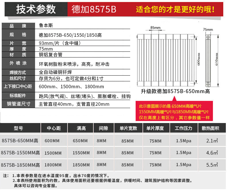 草莓视频污片铜铝复合8575系列暖气片/草莓污视频在线免费观看是一种不腐蚀的草莓污视频在线免费观看产品,使用寿命超过其他任何品种草莓污视频在线免费观看;背部采用分导式对流翅翼,空气对流效果更好,散热性能佳。采用对流散热方式,原理与空调加热方式相同。